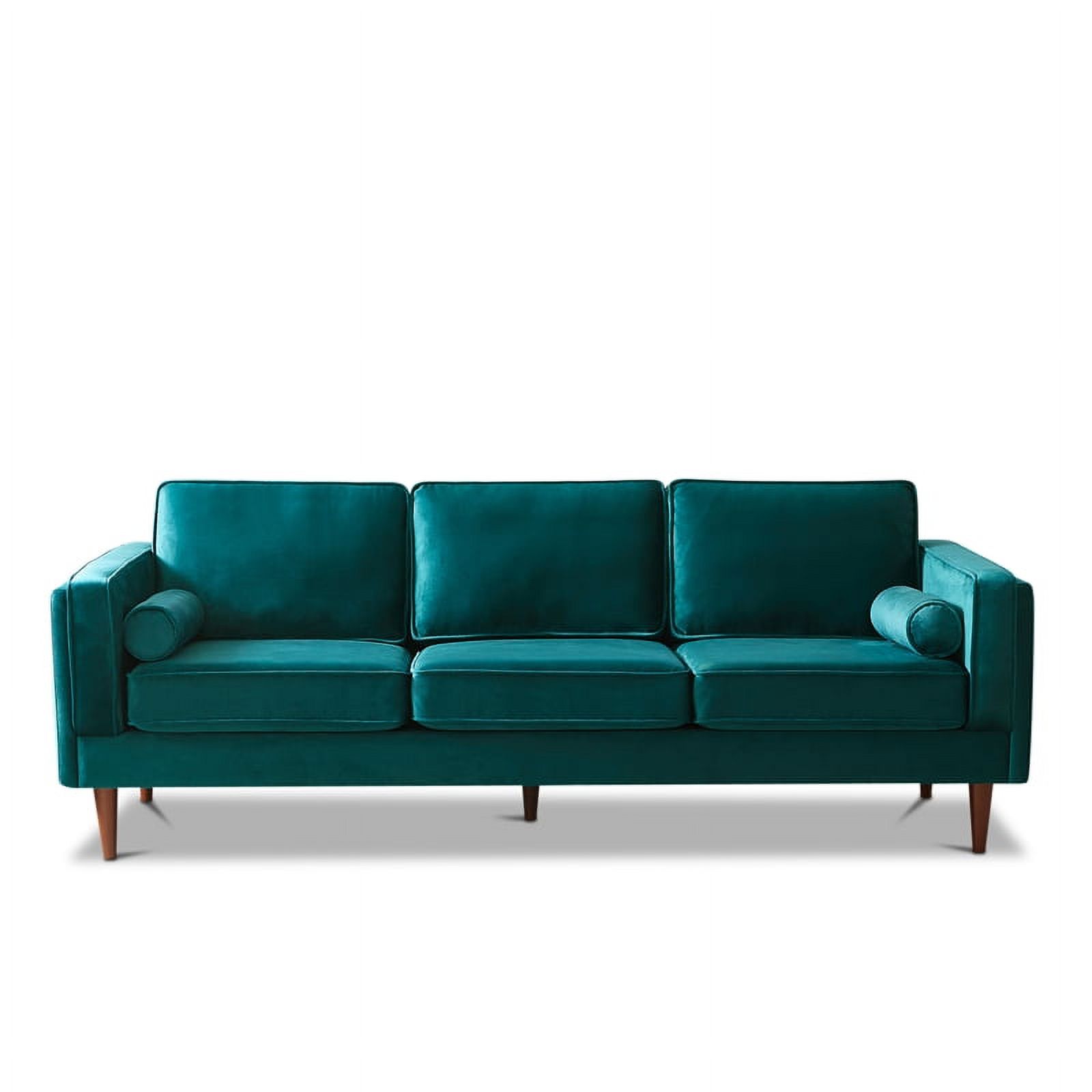 Hudson Living Room Mid Century Modern Pillow Back Velvet Sofa in Turquoise