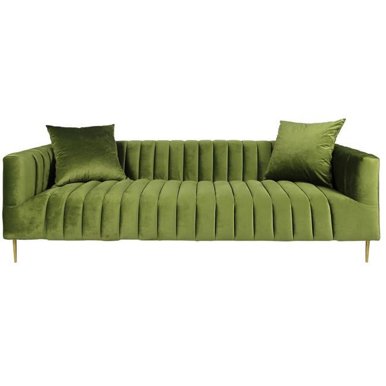 Ruth Sofa in Green Velvet with Gold Tone Metal Legs and 2 Toss Pillows