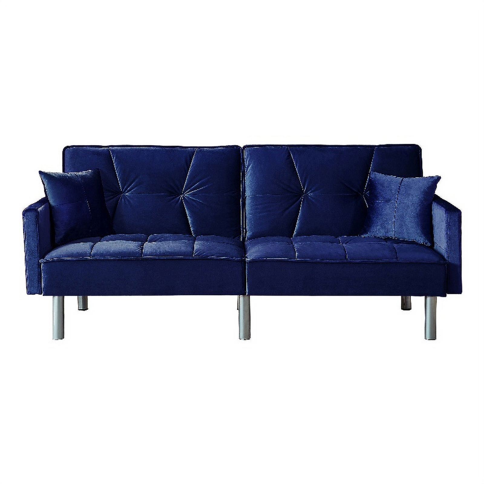 Legend Vansen 75.6" Convertible Modern Wood & Velvet Fabric Sofa Bed in Blue