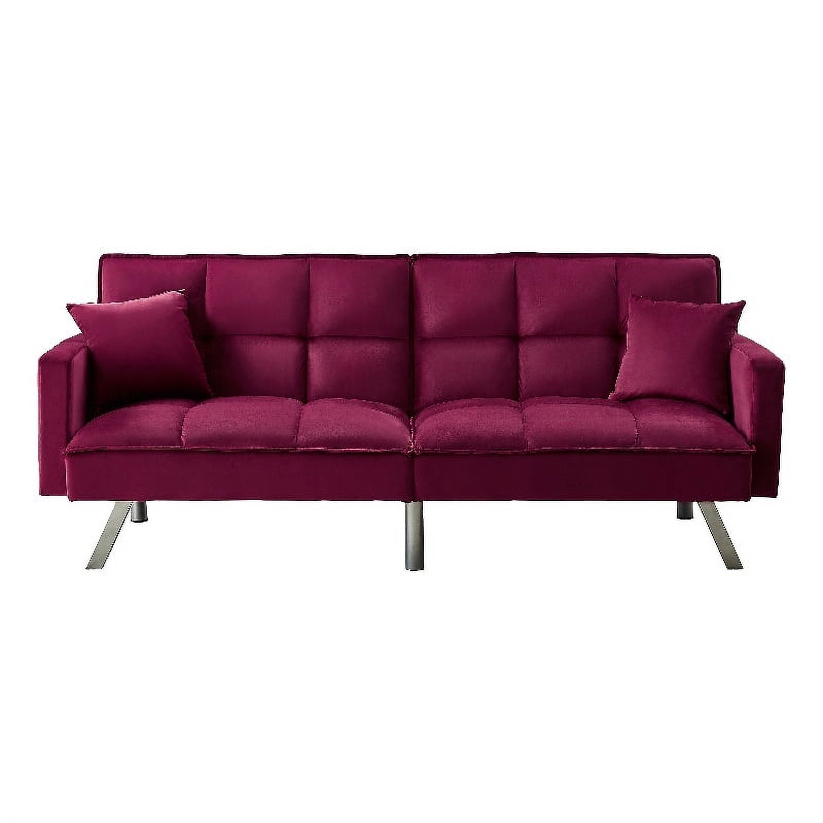 Legend Vansen 80" Convertible Wood & Velvet Fabric Sleeper Sofa Bed in Red