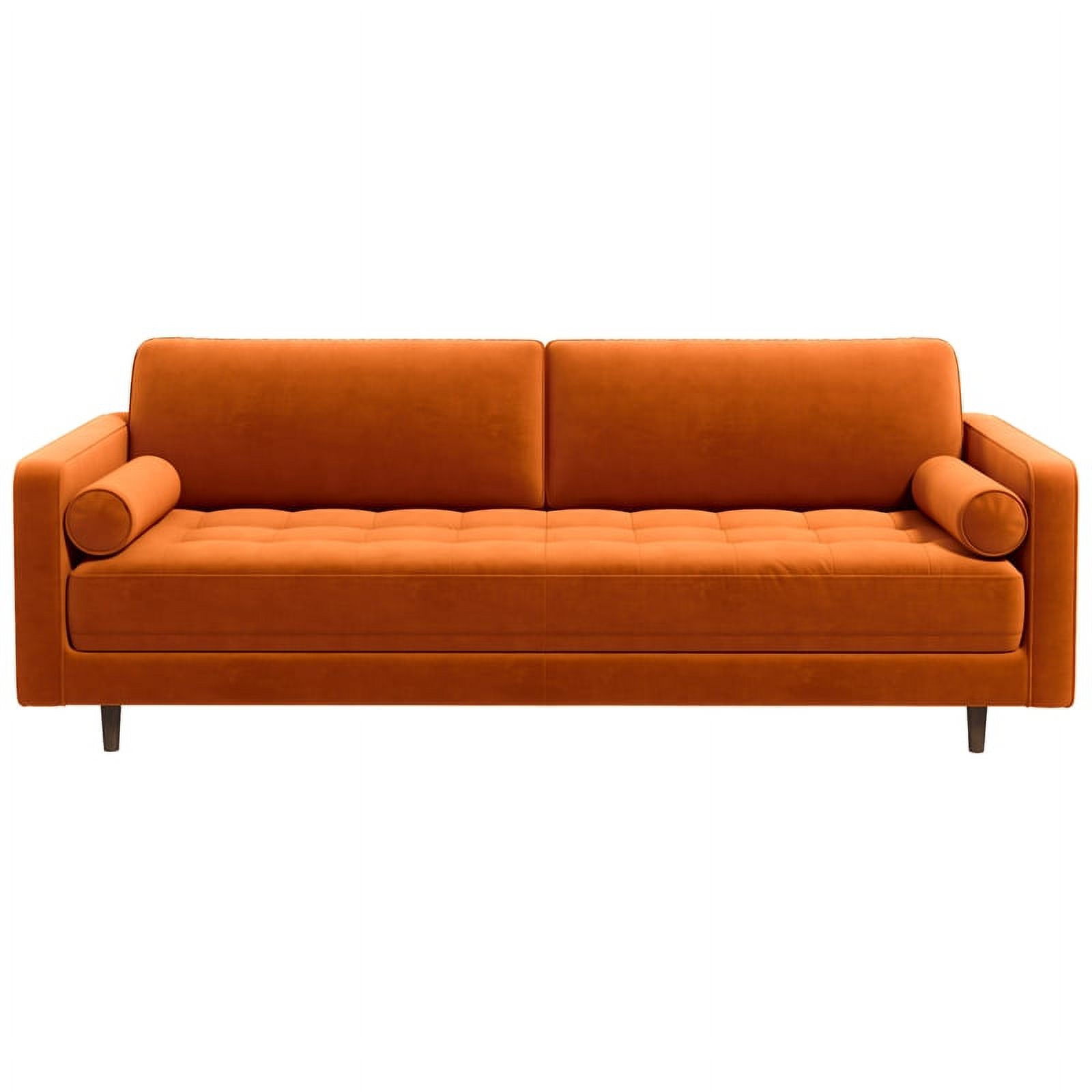 Desmond Upholstered Mid-Century Velvet Sofa in Burnt Orange