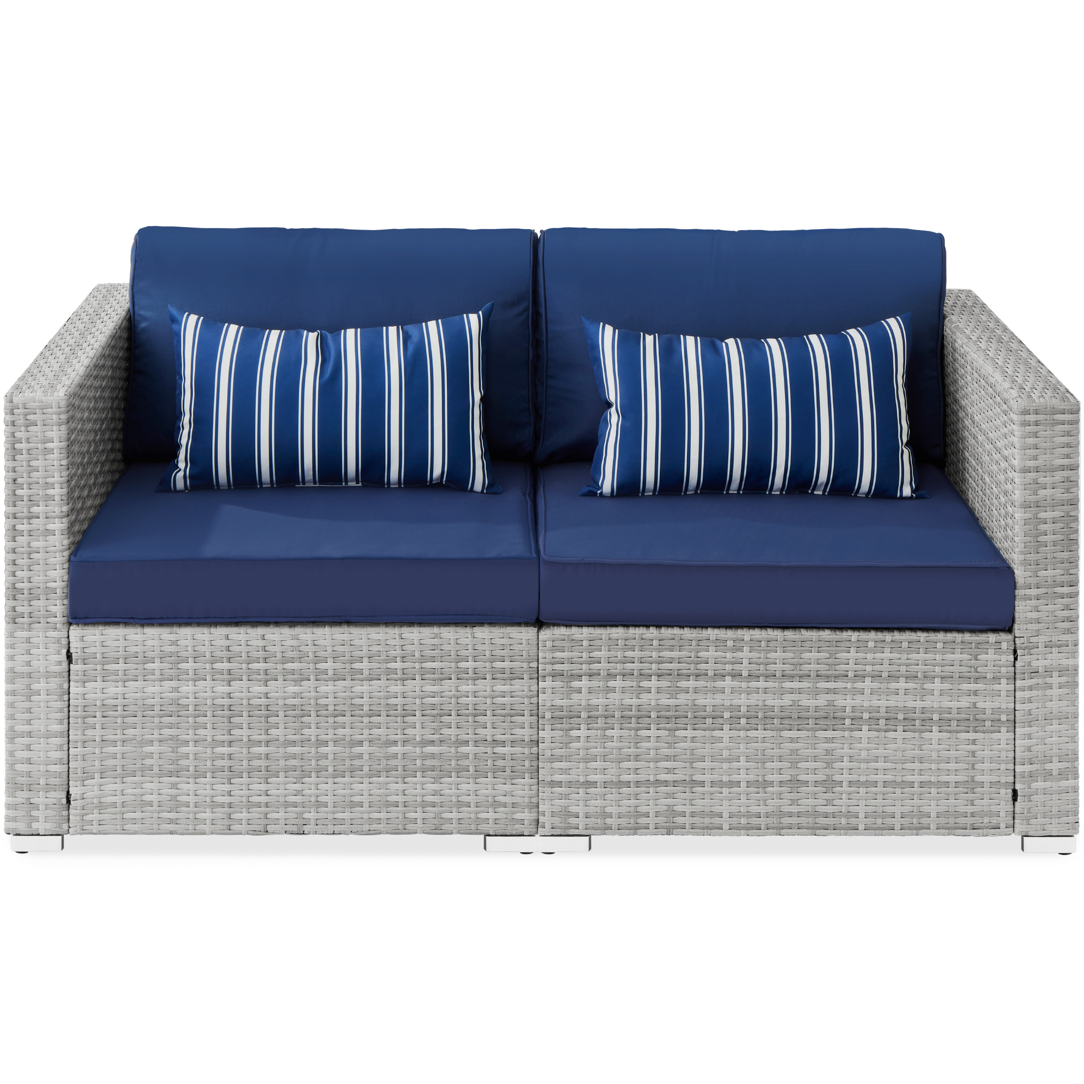 Best Choice Products 2-Person Outdoor Patio Loveseat Wicker Sofa Couch Furniture Set w/ 2 Accent Pillows - Gray/Navy