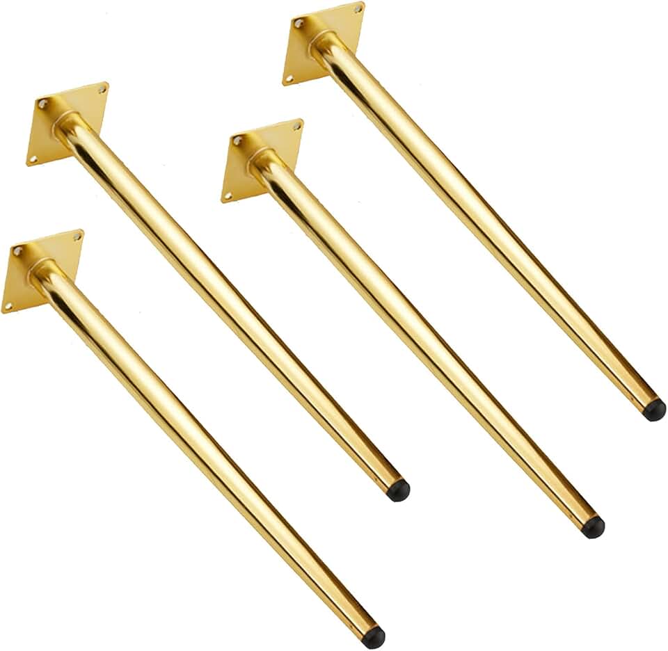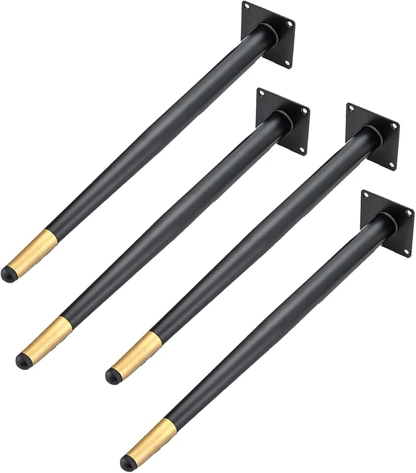 Metal Furniture Legs,Table Oblique Tapered Legs,Iron Support Sofas Legs,Replacement Desk Feet for Cabinets Coffee Tables Chairs TV Stand Bookcase,with Screws,Black Gold,4 Pcs (72cm