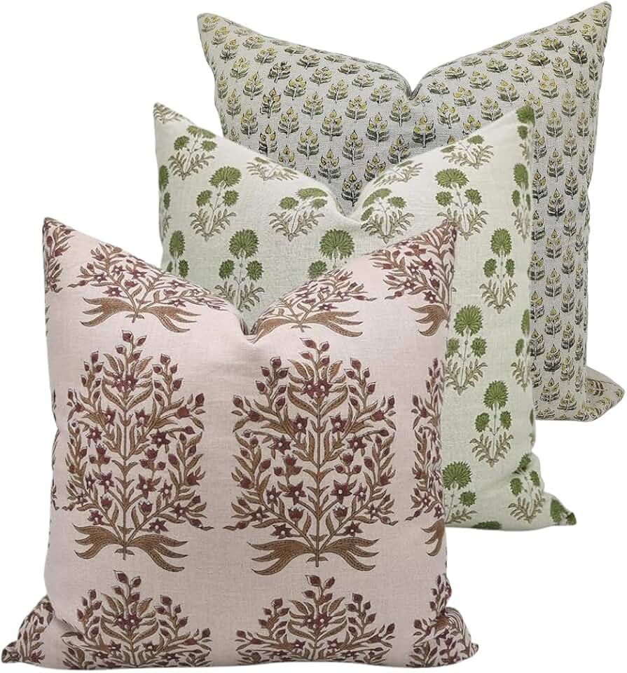 3 Combo Packs (20x20x24x24x26x26) Inch Pure Linen Handmade Block Print Throw Pillowcase Cushion Covers with Hidden Zipper for Living Room, Couch, Sofa, Bed, Long Chair, Home Decor, All Season