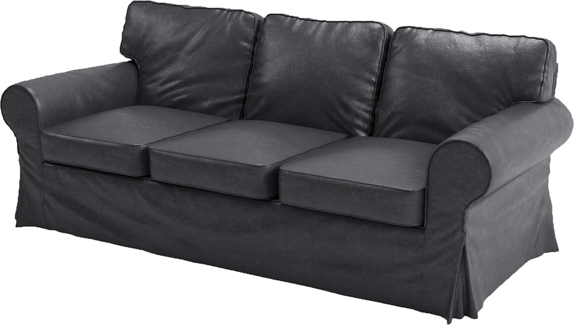The Ektorp 3 Seat Sofa Cover Replacement Is Custom Made Compatible for IKea Ektorp Sofa Cover, an Ektorp Sofa Slipcover Replacement (New Black PU Leather)