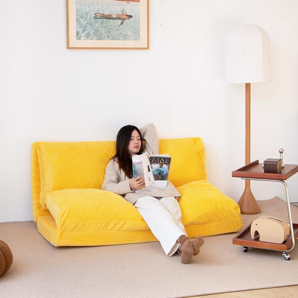 N&V Folding Matress Sofa Bean Bag Bed, Foam Filling Folding Matress Sofa, Includes Removable and Machine Washable Cover, Soft Premium Corduroy (Large, Tuscany)