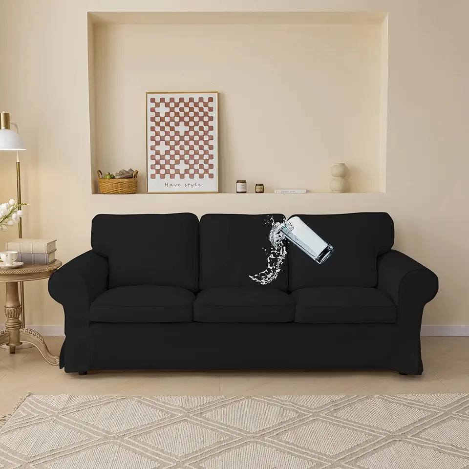 Black Waterproof Ektorp Sofa Cover Custom Made Compatible for IKEA Ektorp 3 Seat Sofa Linen Style Ektorp Sofa Cover, 7 Pieces