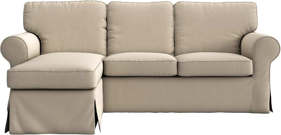 MASTERS OF COVERS Ektorp Loveseat (2 Seat) with Chaise Lounge Cover Replacement Customized for IKEA Ektorp Sectional 3 Seat Sofa Slipcover Replacement (Khaki)