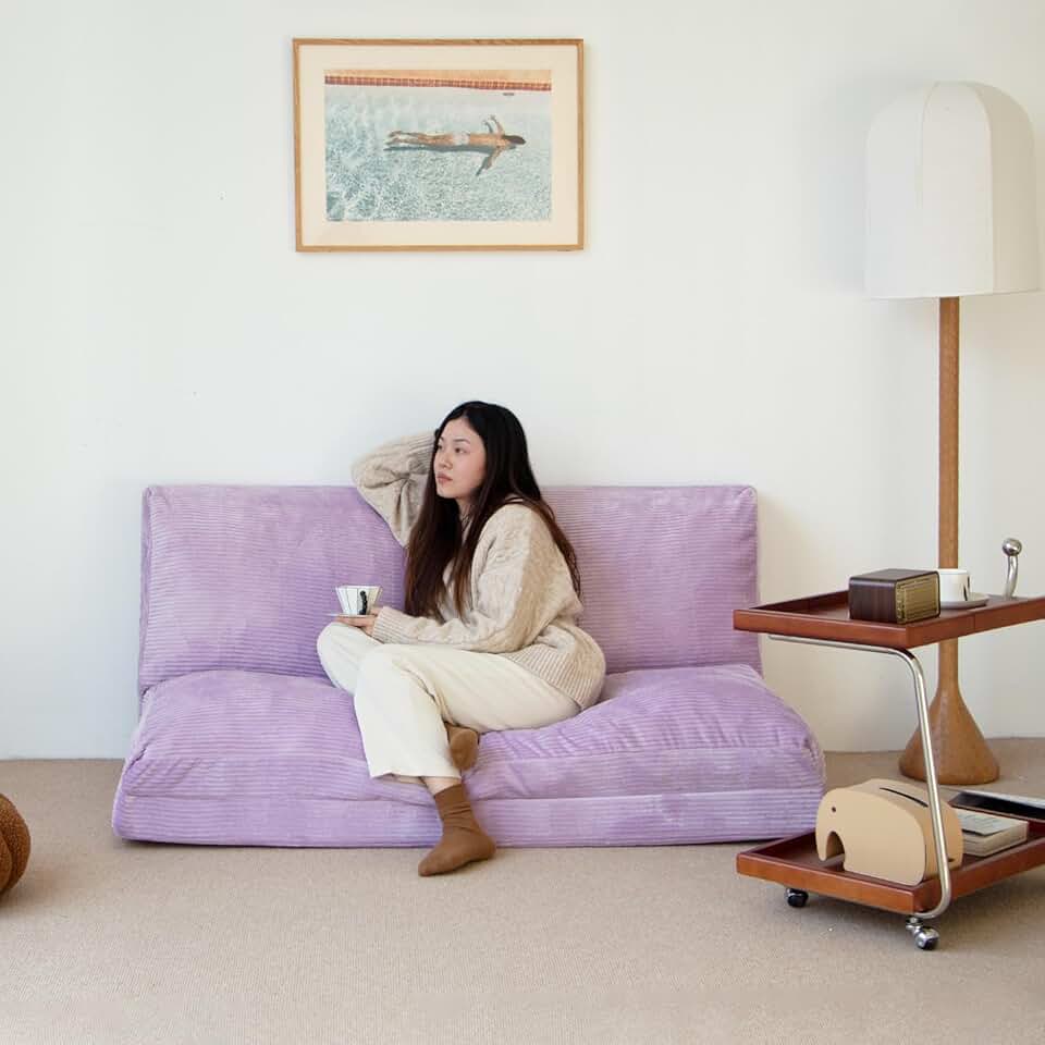 N&V Folding Matress Sofa Bean Bag Bed, Foam Filling Folding Matress Sofa, Includes Removable and Machine Washable Cover, Soft Premium Corduroy (Large, Lavender)