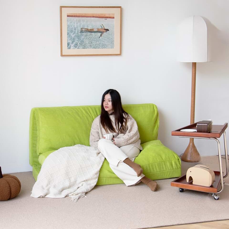 N&V Folding Matress Sofa Bean Bag Bed, Foam Filling Folding Matress Sofa, Includes Removable and Machine Washable Cover, Soft Premium Corduroy (Large, Lime)