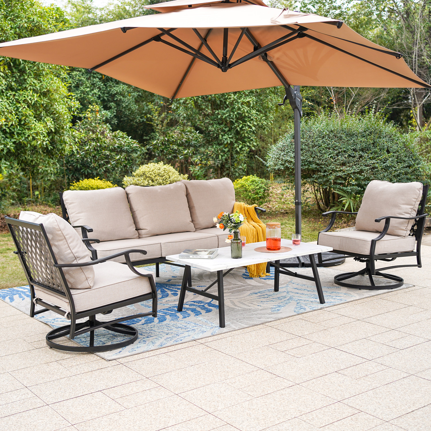 Sophia&William 5 Seat Patio Conversation Set Outdoor Sofa Chairs and Marble Table Furniture Set, Beige