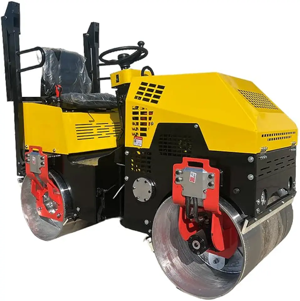 Road roller big tires road roller road compactor vibration compactor, paving tamping machine, dirt tamp, gravel tamp, roadway roller, paving press (Yellow)