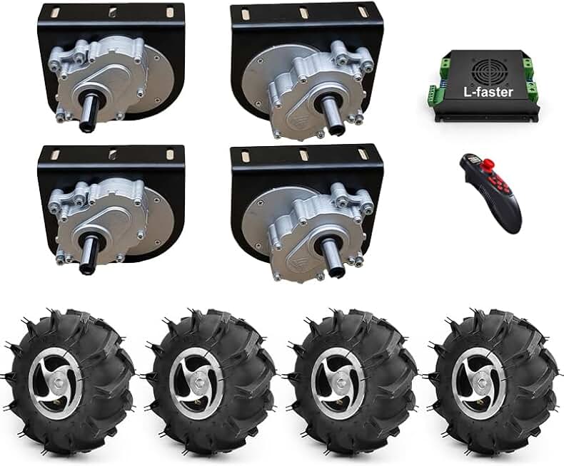 4WD 1000W Four Drive Kit 3.50/3.00-4 Agricultural tire 10 Inch Wheel Set For DIY 4X4 Lawnmower Barrow Trolley Cart (Wheel max speed 6kph)