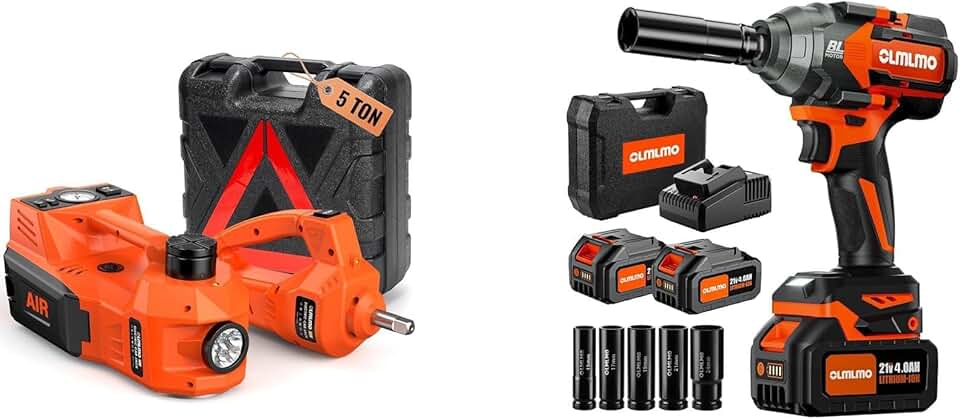 Cordless Impact Wrench 1000NM High Torque Impact Gun with Electric Car Jack, 5 Ton (11023 LBS) 12V Hydraulic Car Jack Kit for Car SUV MPV Sedan Truck Change Tires Garage Repair