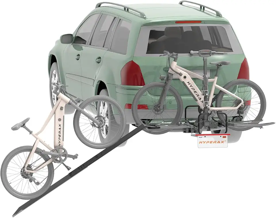 HYPERAX Lifting Made Easy Combo- Volt 2 & Ramp with License Plate Holder and 2024 Ebike Adapter - Bike Rack for Car, SUV, Trucks - 2" Hitch Fits Up to 2 X 70 lbs Bike with Up to 5" Fat Tire (NO RV U