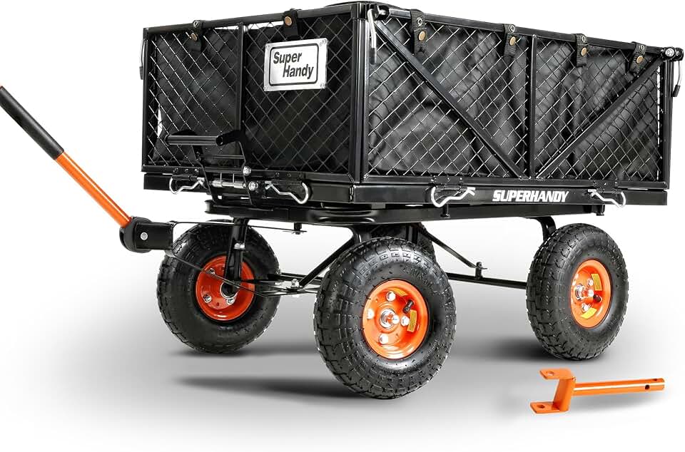 SuperHandy Heavy-Duty Garden Dump Cart - Towable, Quick Release System, 10-Inch Pneumatic Tires, Compatible with Tugger Scooter