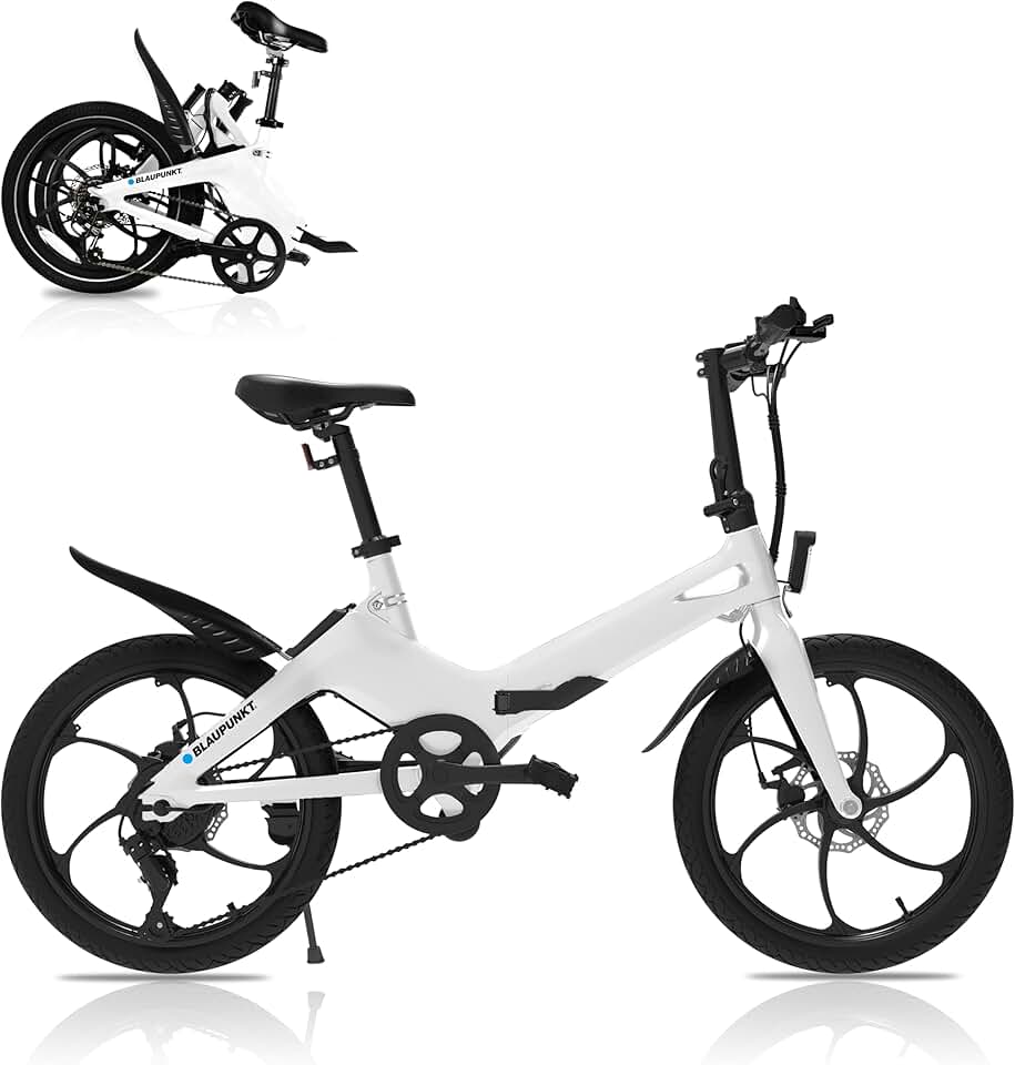 BLAUPUNKT Folding Electric Bike for Adults, 350W Lightweight UL Certified eBike, 20 Inch Tire, Pedal and Throttle Assist, Foldable Step-Through Frame, White