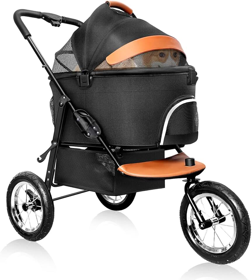 Dog Strollers for Medium Small Pet - 3 in 1 Pet Stroller Cats/Dogs, Zipperless Entry, Jogging Tires, 3 Wheels with Detachable Dog Carriage, Storage Basket and Easy One-Hand Fold