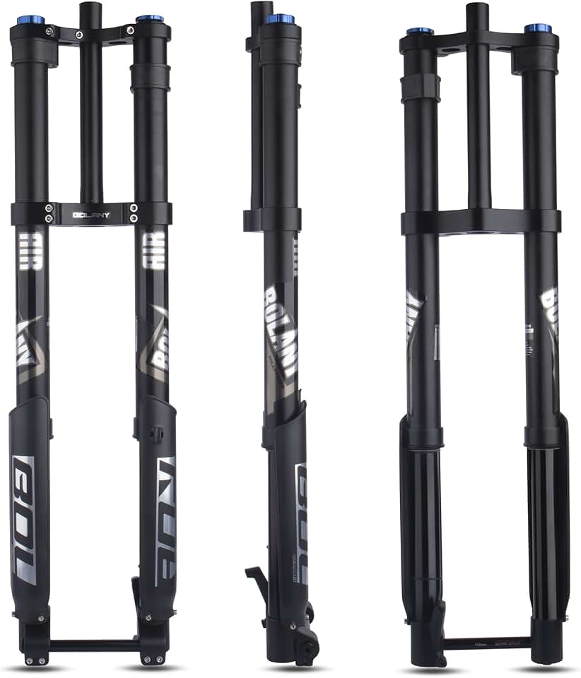Downhill Mountain Bike Air Suspension Front Fork Double Shoulder Inverted Aluminum Alloy Thru-Axle Boost Spacing 15 * 110mm Fork Fit for Disc Brake 26/27.5/29 Inch Tire