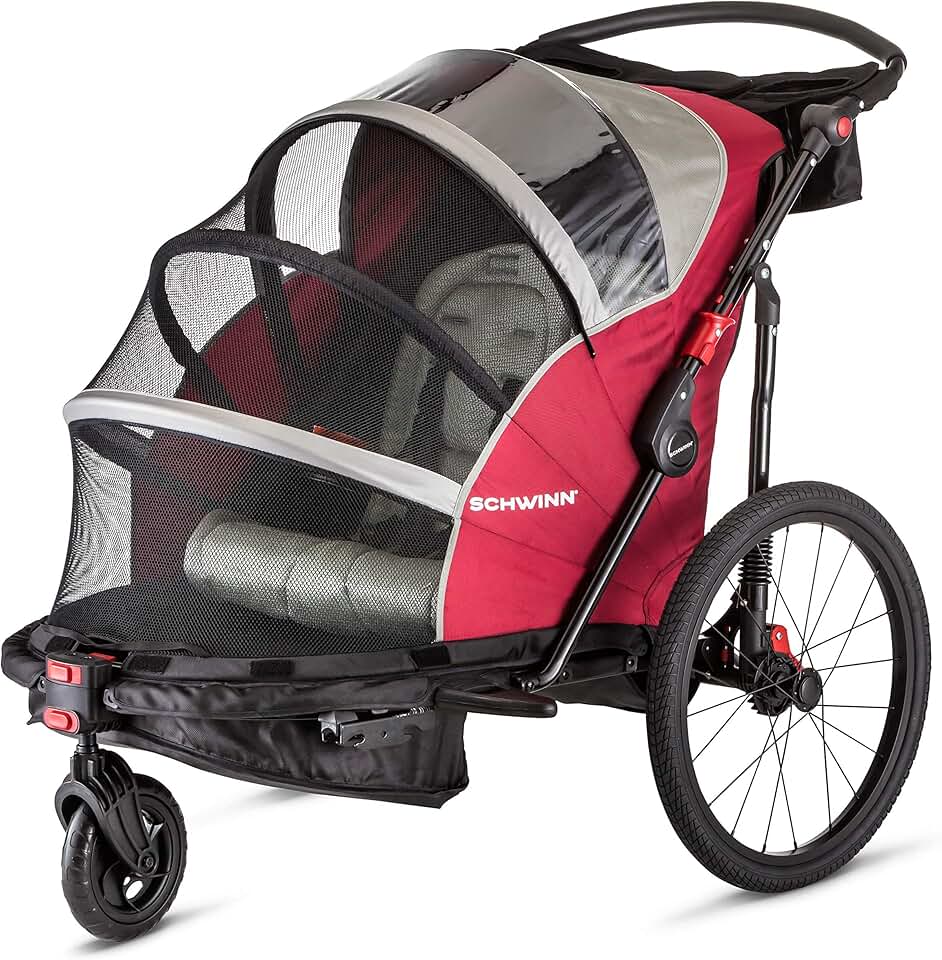 Schwinn Joyrider Echo and Trailblazer Child Bike Trailer, Single and Double Seat Baby Carrier Options, Canopy, 16 or 20-Inch Air-Filled Tires, with Bug Screen & Weather Shield, Bike Attachment