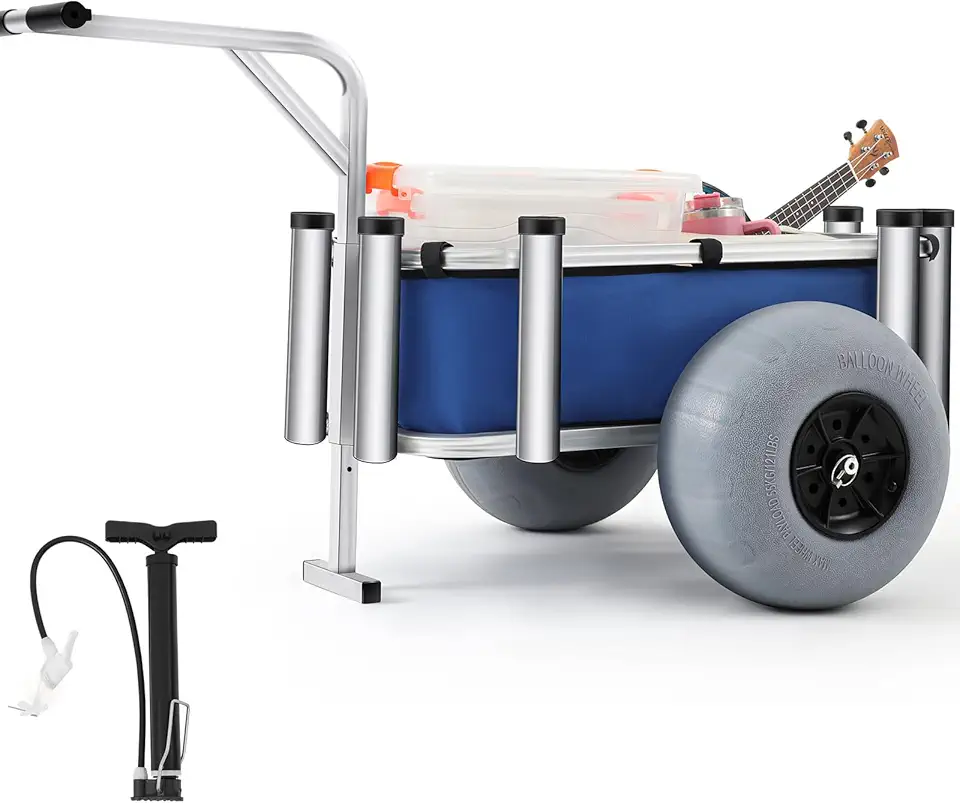 Beach Fishing Cart Balloon Wheels Balloon Tire Surf Outdoor Heavy Duty Aluminum Fishing Rolling Wheel Wagon Beach Cart with Large Wheels for Fishing Camping 32 x 14 Basket Anti Corrosion