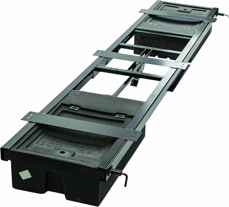 Lippert Standard Double Bin Storage System with Spare Tire Carrier - 99.5" x 21.5" — Rust-Inhibitive Coating - Detachable Molded Storage Boxes - 100 lb. Capacity - Mounting Hardware Included - 125460