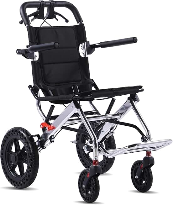 Ultralight Folding Transportation Wheelchair Adult/Elderly Push Wheelchair Net Weight 18 lbs Travel Aluminum Wheelchair 12” Honeycomb Shock Absorbing Tires with Hand Brake Easy to Carry (Silver)