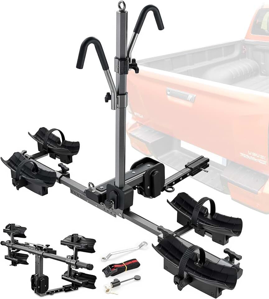 Bike Rack Hitch Mount, 220 LBS Capacity Tilting Foldable Heavy Bicycle Car Racks for Ebike with up to 5" Fat Tire, 2 Bikes Platform Carrier for Car, SUV, Truck, RV, Trailers with 2" Receiver