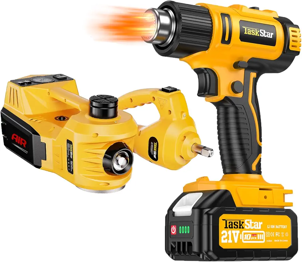 Bundle Electric Car Jack Kit+ Cordless Heat Gun,5 Ton 12V Car Jack Hydraulic with Electric Impact Wrench,122℉-1022℉ Fast Heating Soldering for Change Tires Garage Repair,Automotive and Construction As