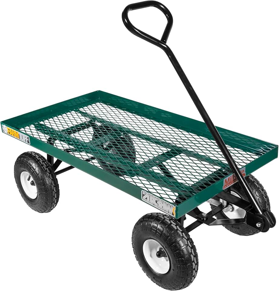 Durable Metal Deck Garden Wagon Utility Cart with Pneumatic Tires for Outdoor Hauling, Green, 20" x 38"