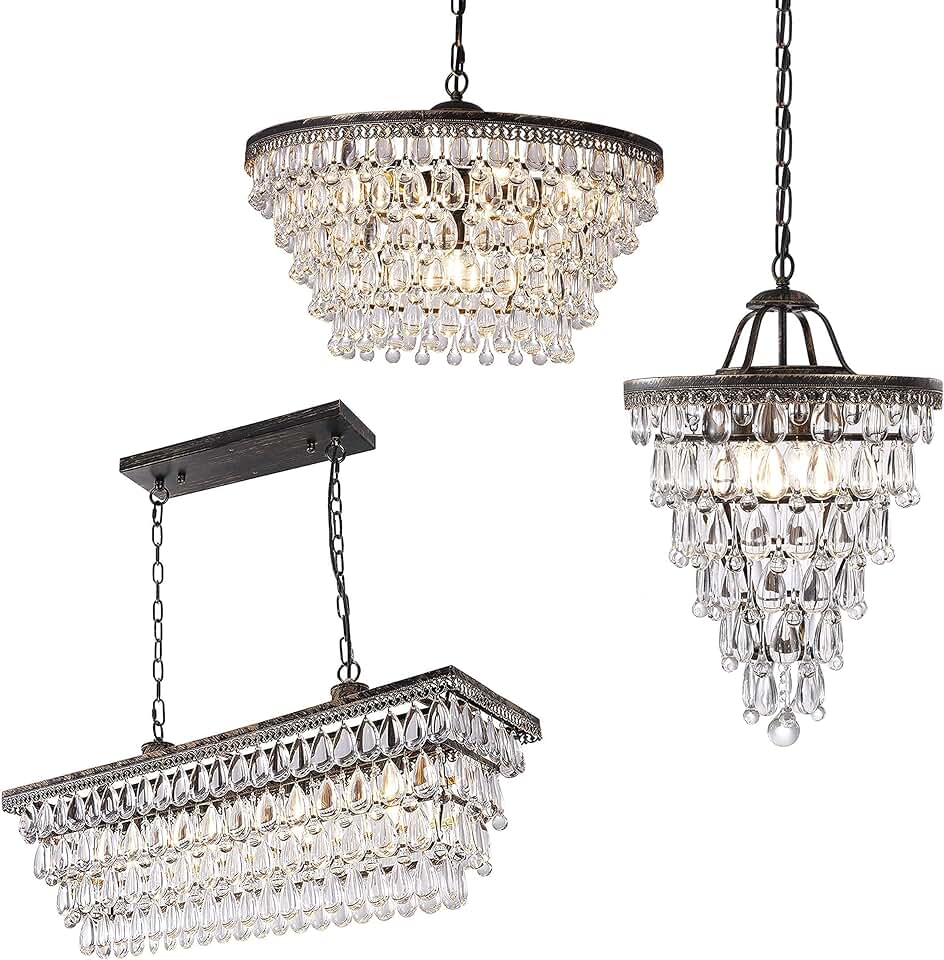 Wellmet Crystal Chandelier, Antique Bronze Tires Crystal Pendant Light for Living Dining Room, Bedroom, Kitchen Island