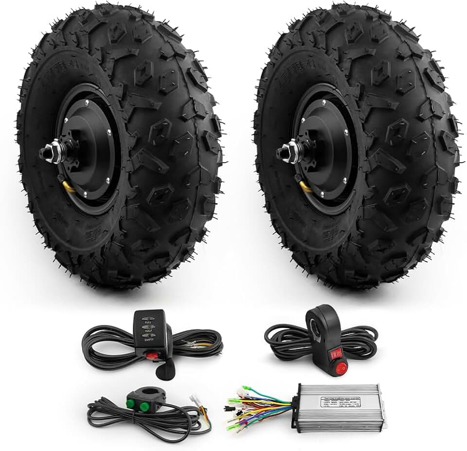 L-faster Dual Drive 14.5 inch Off Road tire 48V 36V 350W brushless Gear hub Motor Wheel kit for Electric Platform Lorry Flat car Key Throttle kit (36V 350W)