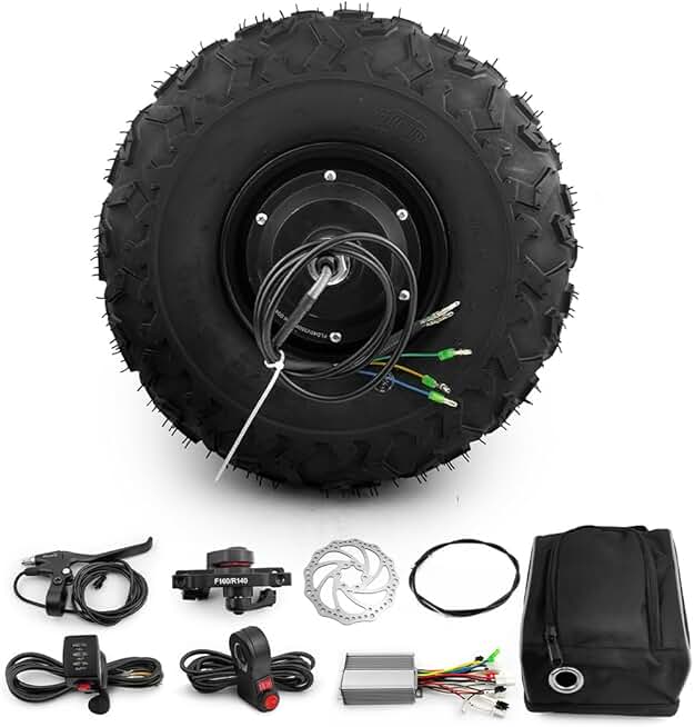 14.5 Inch 350W Brushless Geared Hub Motor with 145/70-6 Off Road Tire for Electric Trolley Wheelbarrow Scooter (Disc Brake kit, 48V 350W)