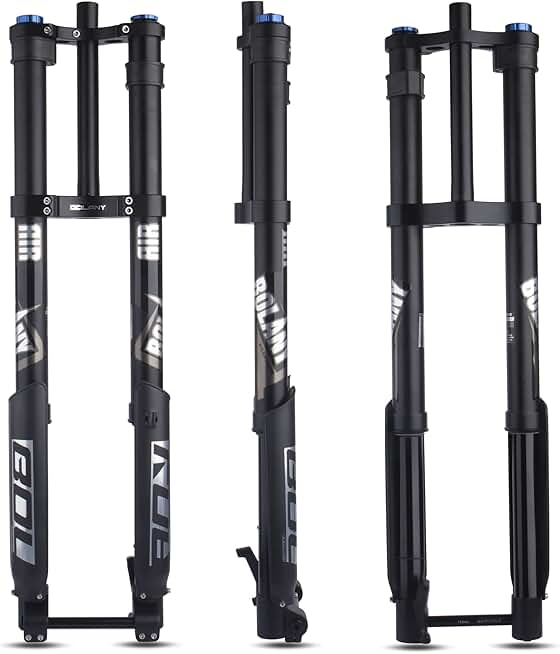 BOLANY Downhill Mountain Bike Air Suspension Front Fork Double Shoulder Inverted Aluminum Alloy Thru-Axle Boost Spacing 15 * 110mm Fork Fit for Disc Brake 26/27.5/29 Inch Tire
